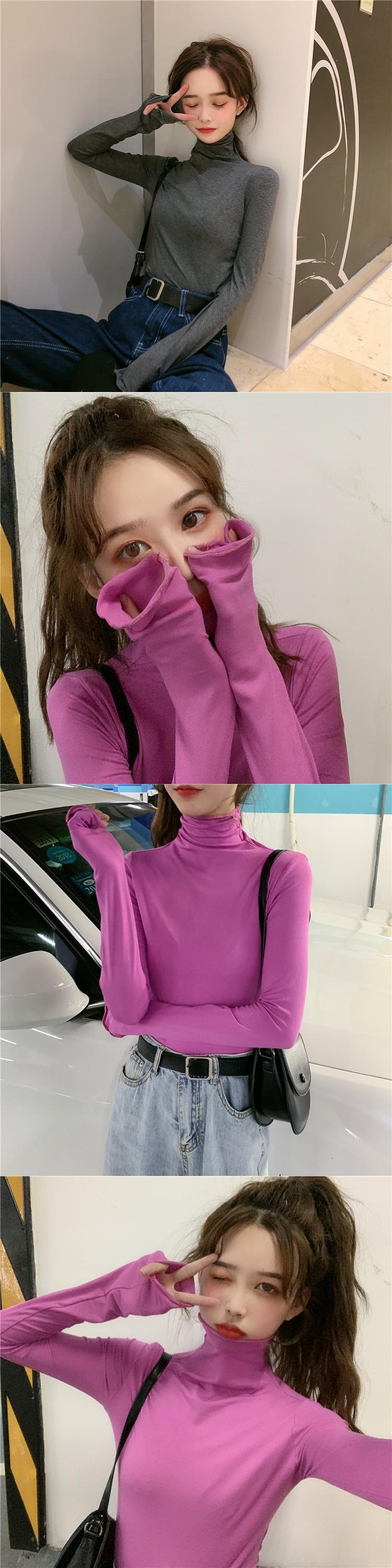 スプリングスタイルスリム薄手ソリッド カラーTシャツ シャツ レディーストップス ロング 春物 ソリッドカラー 試着室38612732843