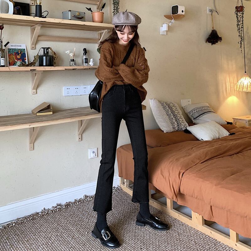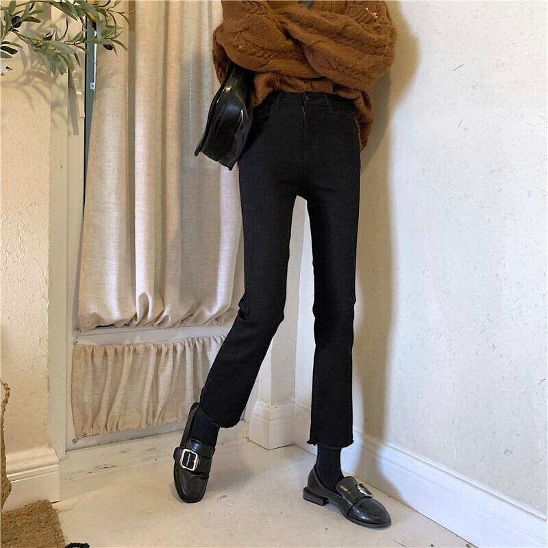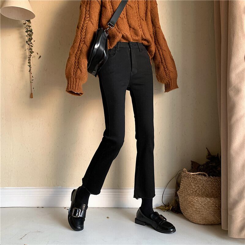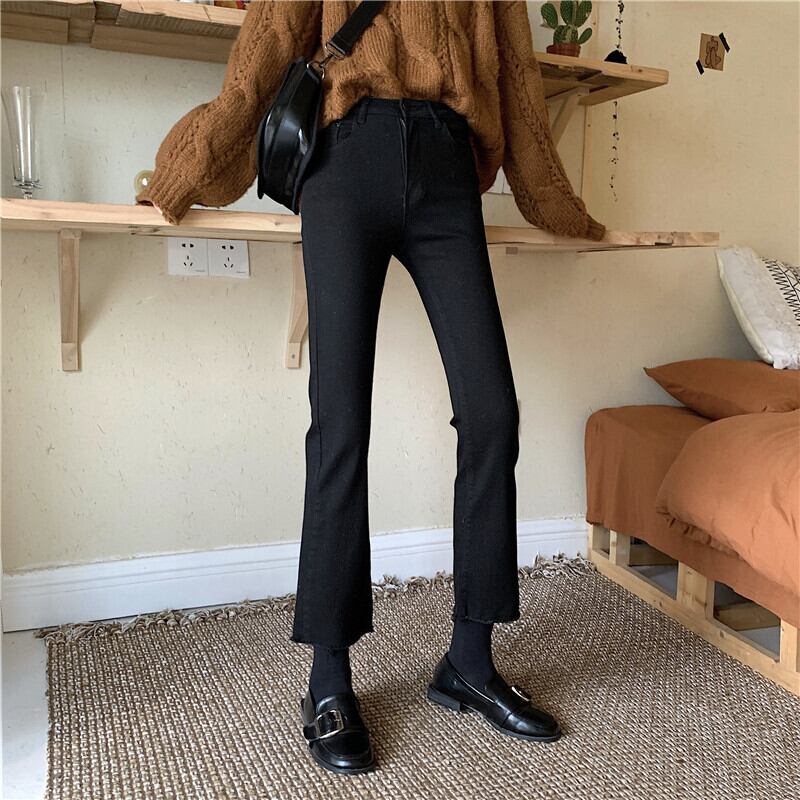ブラックハイウェストジーンズ 薄手パンツ レッド ウィンター 冬物 試着室20801888043