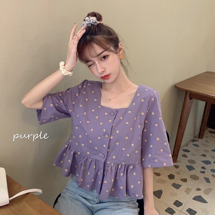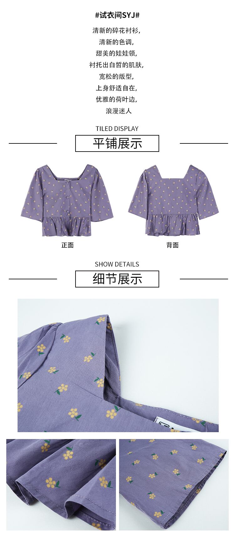 フローラルシャツ カラートップス 花柄 パープル スクウェア 試着室7671087157