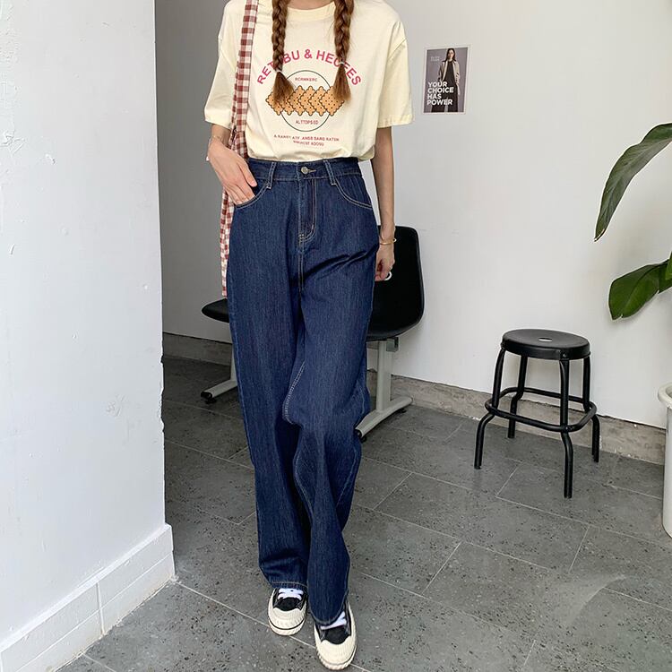 ダークブルージーンズ スプリングルーズハイウェストウェストスリムパンツ 春物 試着室10125001292