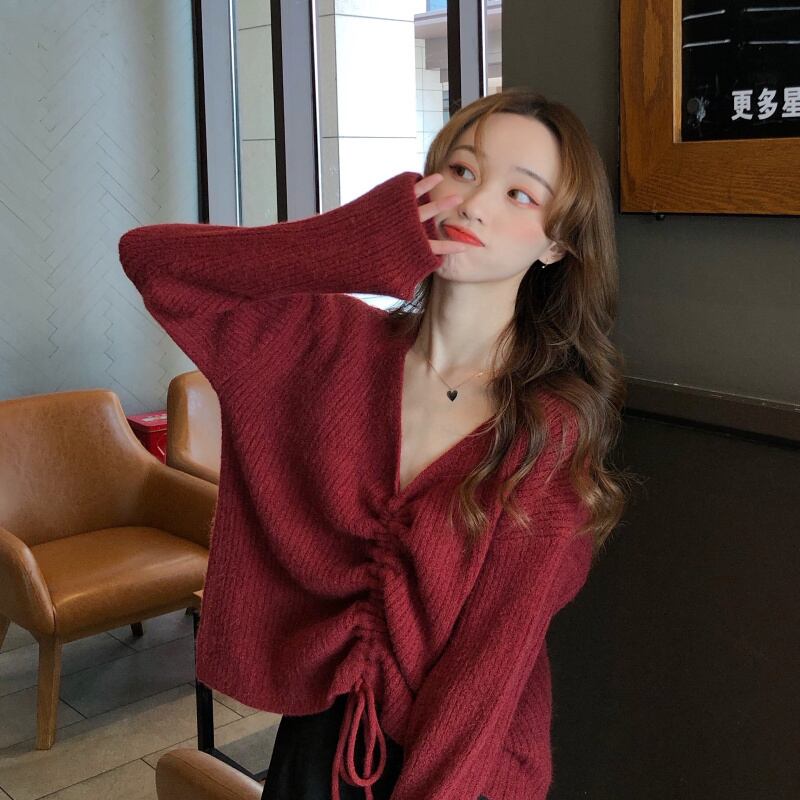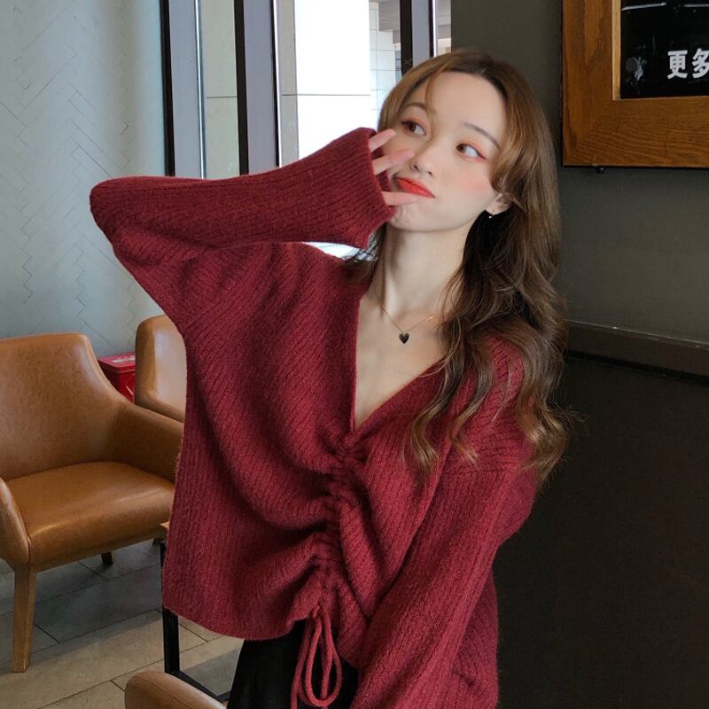 Vネックプルオーバー ブラウス スプリングレッドスタイルセーター レディース ロング 春物 試着室27946788760