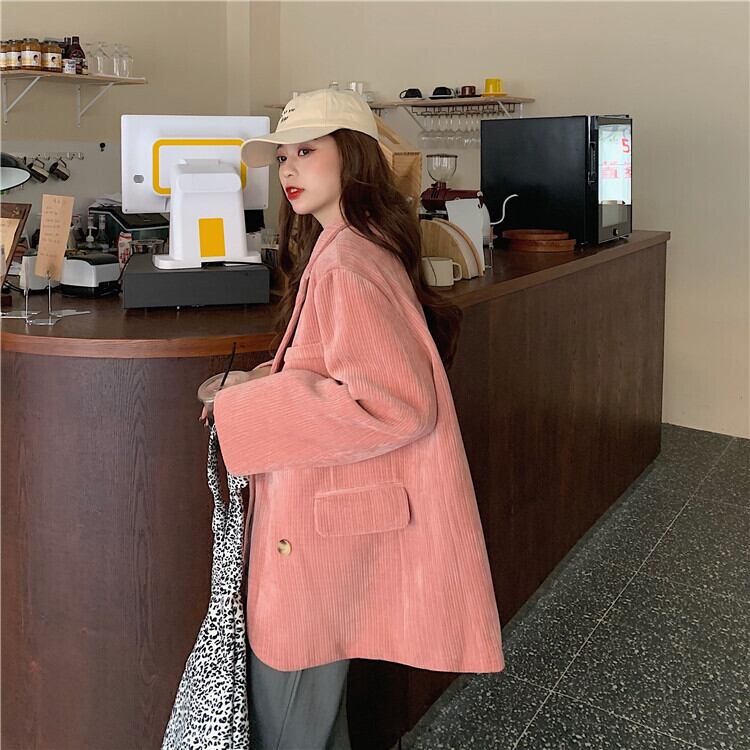 レッドコーデュロイジャケット スプリングオータムスタンダード レトロ 春物 秋物 試着室52794417522
