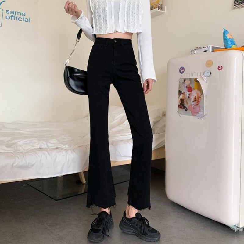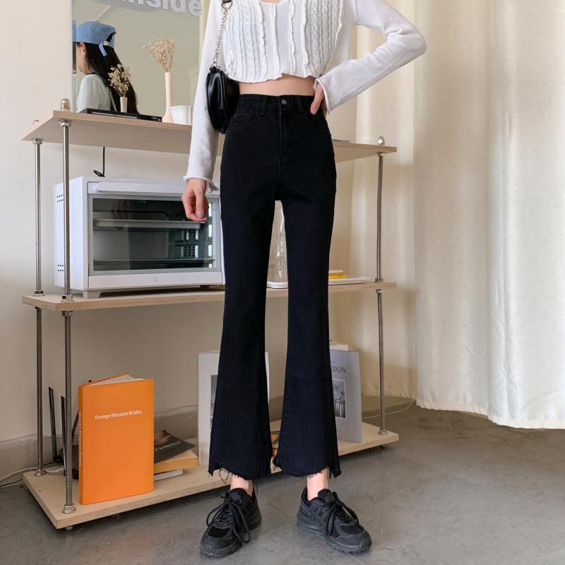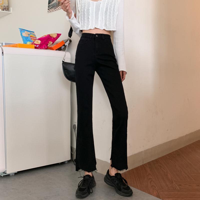 ブラックジーンズ スプリングオータムハイウェストパンツ 薄手 レッド 春物 秋物 試着室67986068475