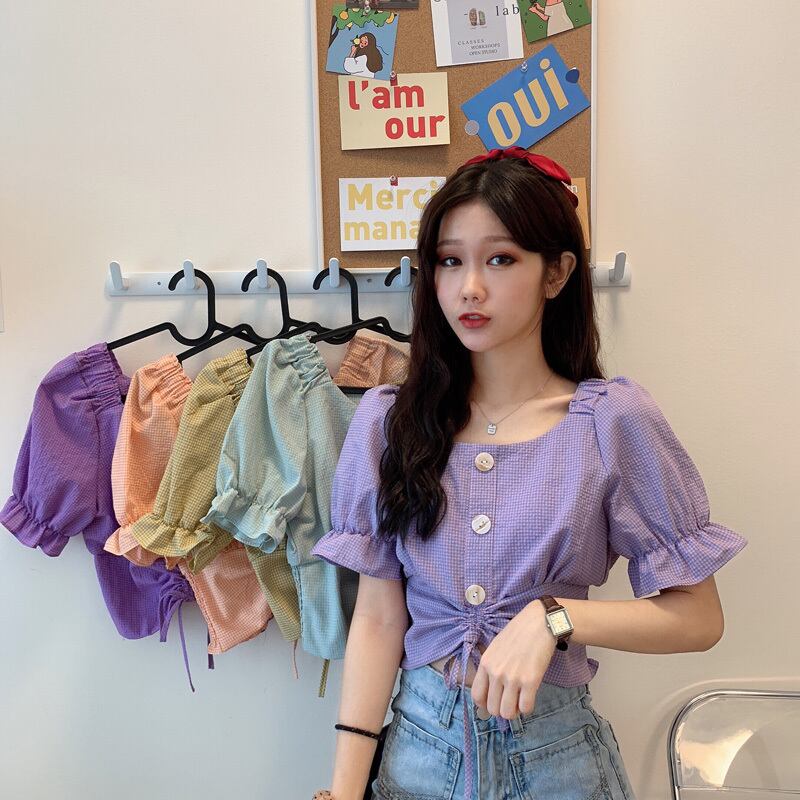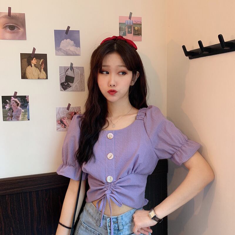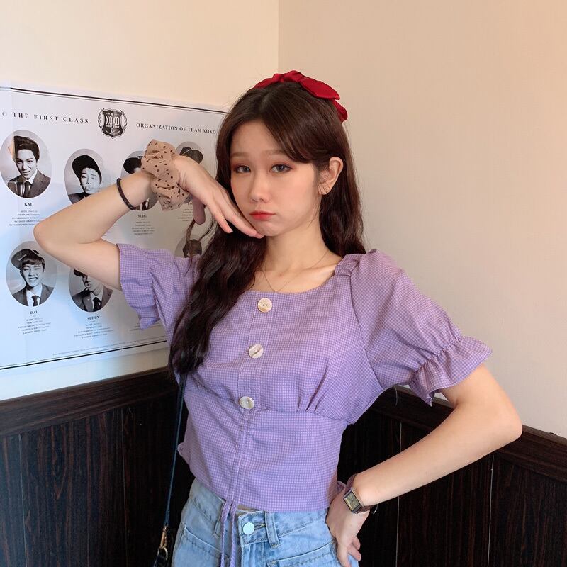 ショートスリーブシャツ サマーカラートップス 夏物 パープル スクウェア 試着室9510512853