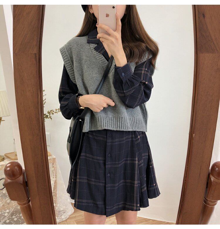 スカート スプリングドレス ウェスト薄手Aライン格子柄 春物 試着室24960673567