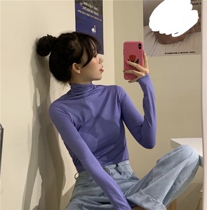 オータムウィンターソリッド カラーシャツ スリムトップス Tシャツ レディース ロング 秋物 冬物 ソリッドカラー 試着室29532142661