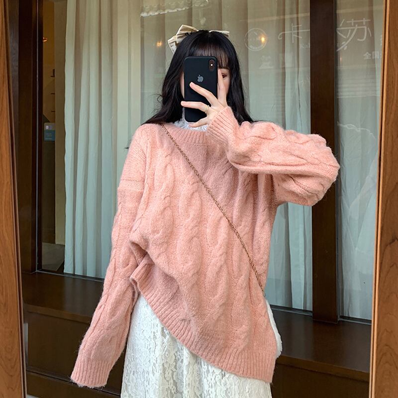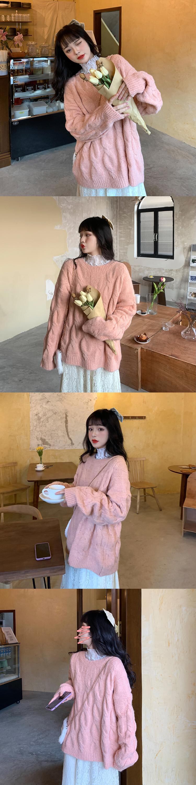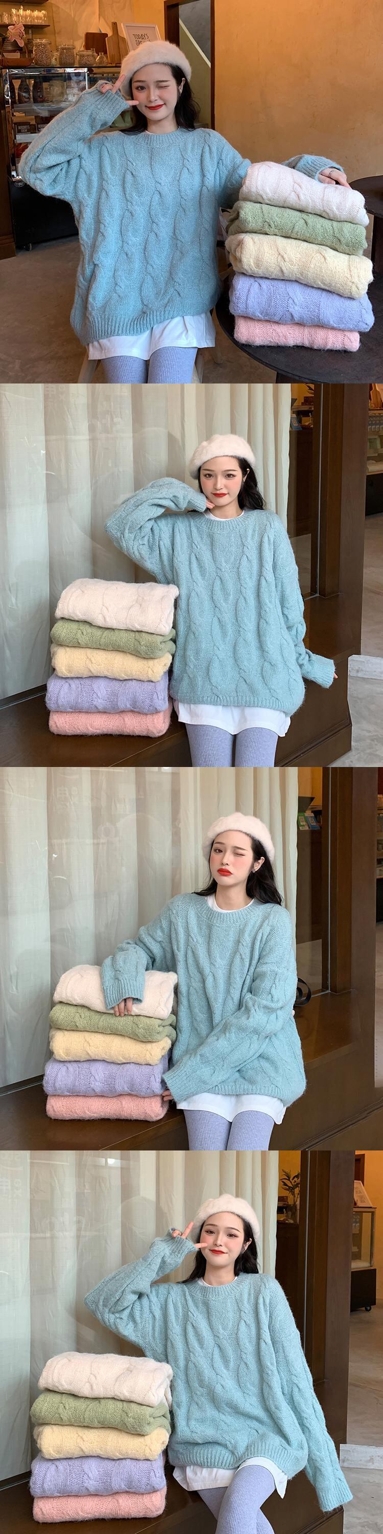 ラウンドネックセーター スプリングオータムスタイルニット 春物 秋物 Oネック 試着室51837342424