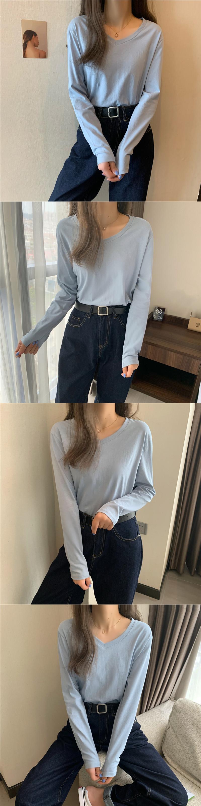 スプリングオータムVネックトップス ロング 春物 秋物 Tシャツ 試着室13603362053