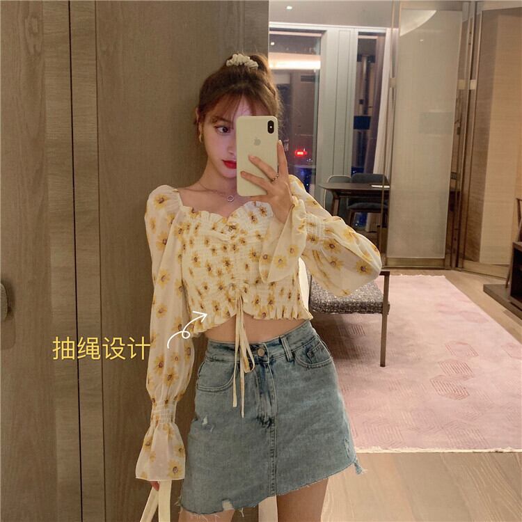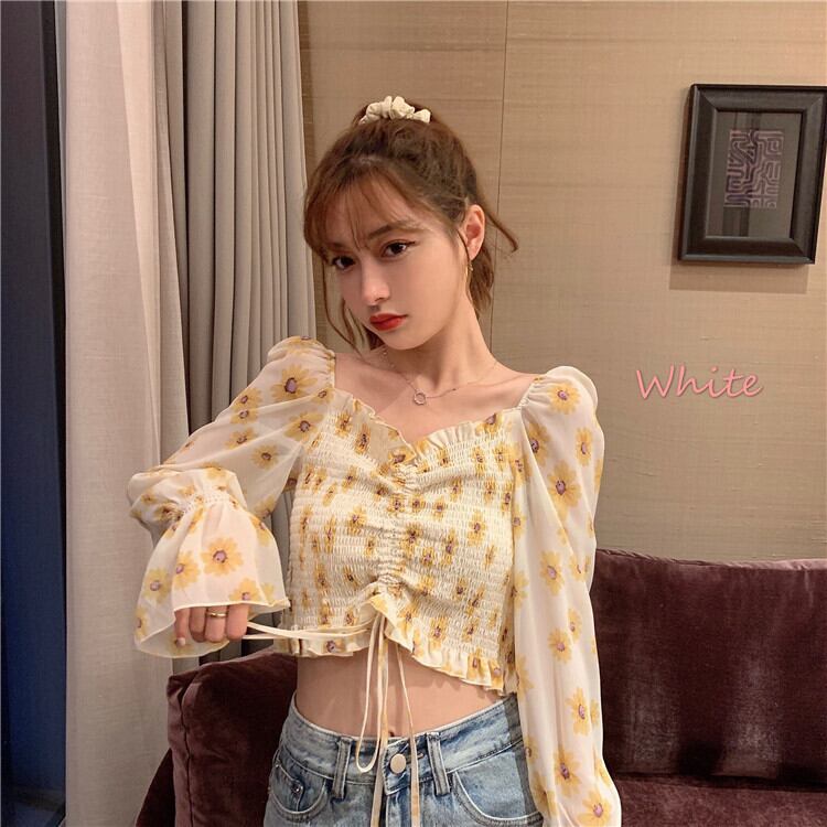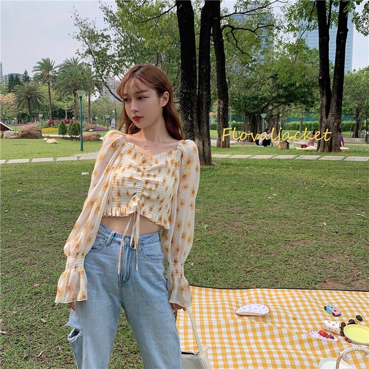 サマースタイルVネックシフォンシャツ ショートフローラルブラウス ロング 夏物 花柄 試着室65982636059