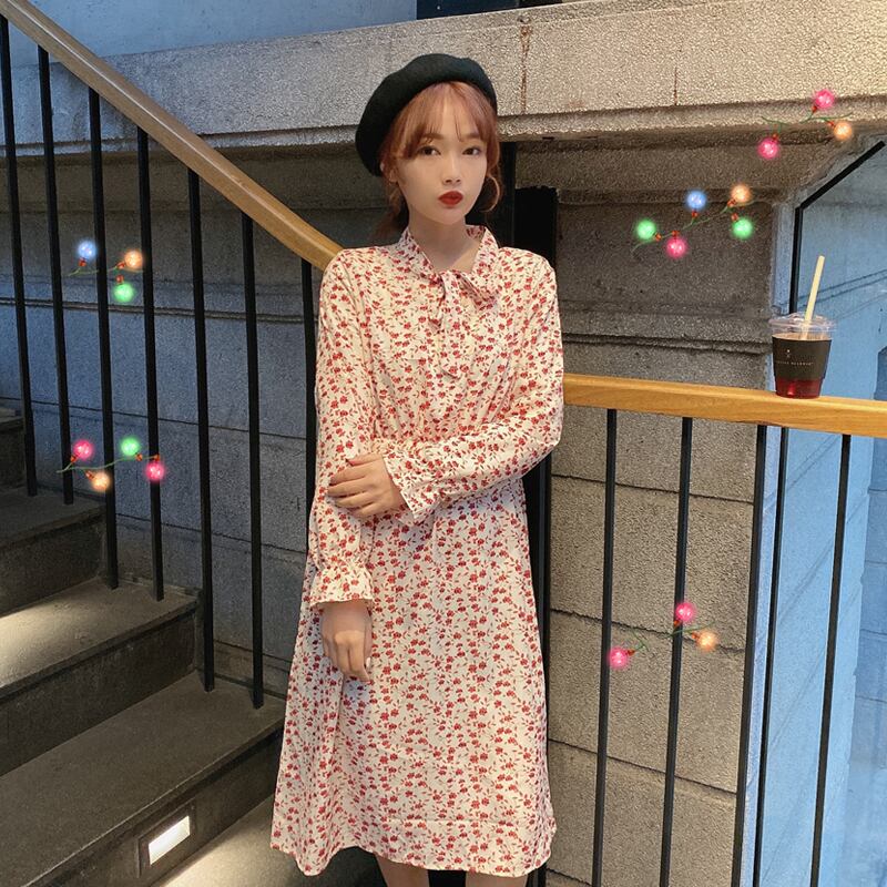 レッドスタンダードフローラルスカート オータムウィンタードレス レディース レトロ 秋物 冬物 花柄 試着室79927148351