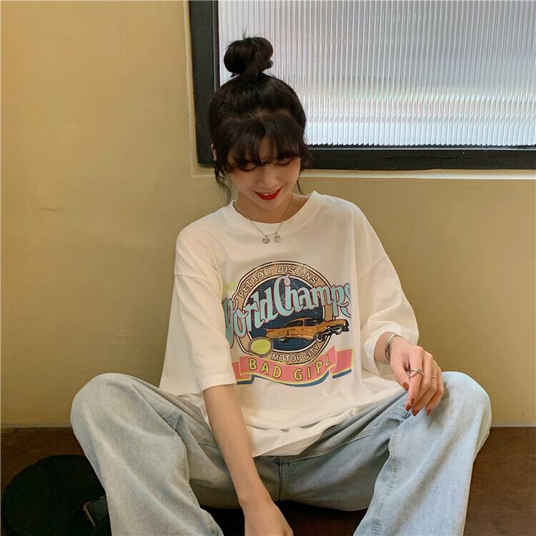 ホワイトルーズトップス サマーレッドTシャツ 夏物 試着室28205170933
