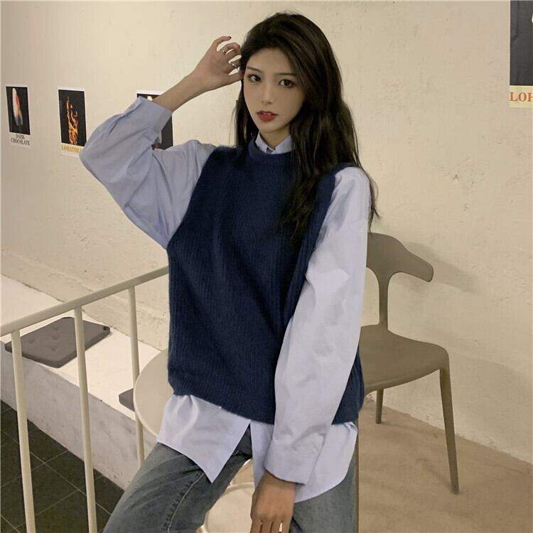色:青いシャツ,ブルーベストワンピース,白いシャツワンピース,グレーベストシングルピース