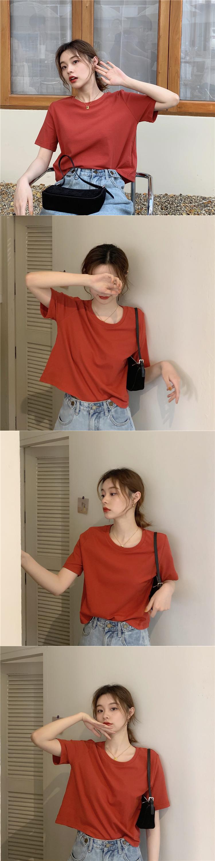 ショートTシャツ サマーレッドルーズソリッド カラーハイウェストウェストトップス 夏物 ソリッドカラー 試着室3429904141