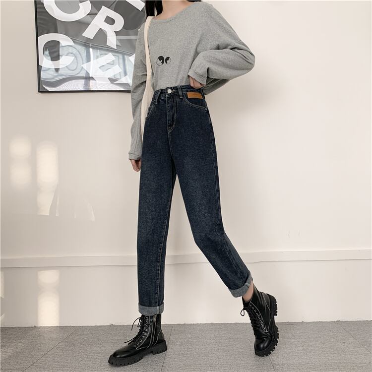 スプリングオータムパンツ ルーズハイウェストジーンズ レディース薄手 春物 秋物 試着室3234964542