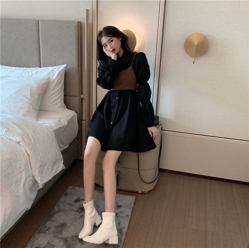 スカート スプリングスタンダード長袖スリーブドレス ロング レトロ ストリート 春物 試着室16477825735
