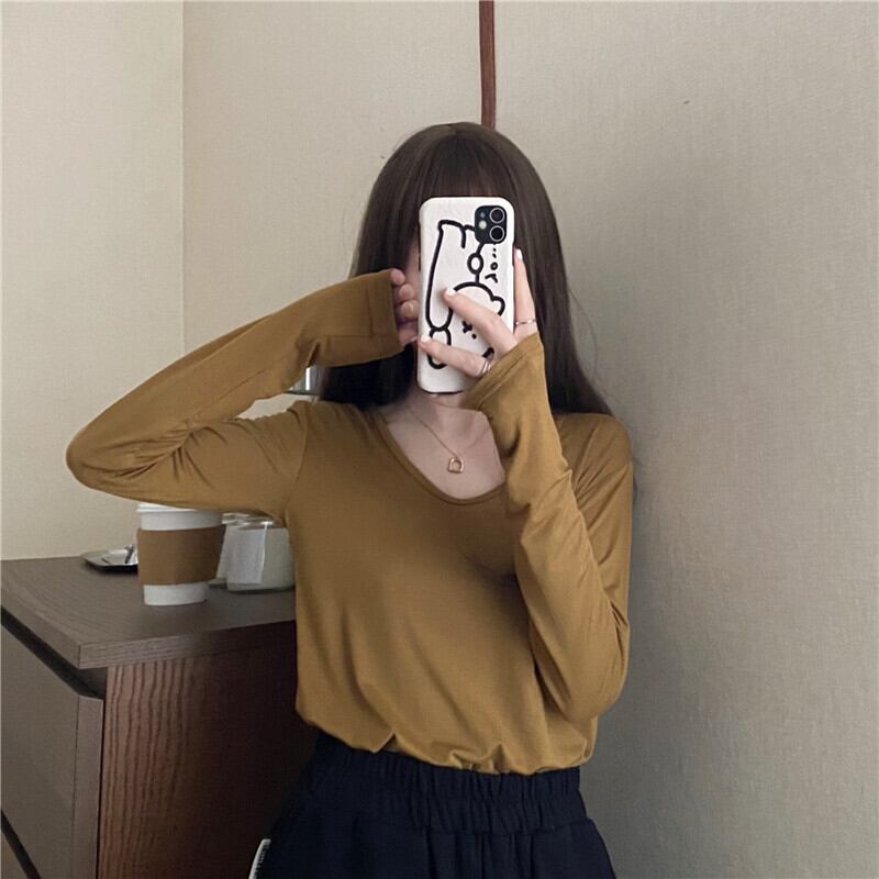 ブラックシャツ レディーススプリングオータムルーズVネックTシャツ トップス ロング 春物 秋物 試着室22983792947