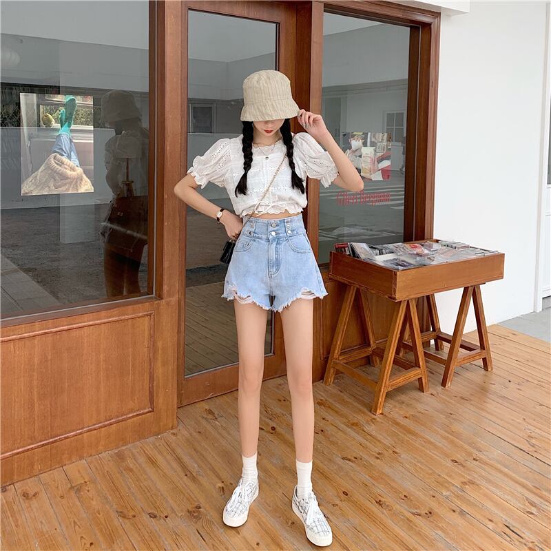 サマースタイルショーツ パンツ ハイウェストウェストルーズスリムジーンズ レディース 夏物 ブルマー 試着室46755190956
