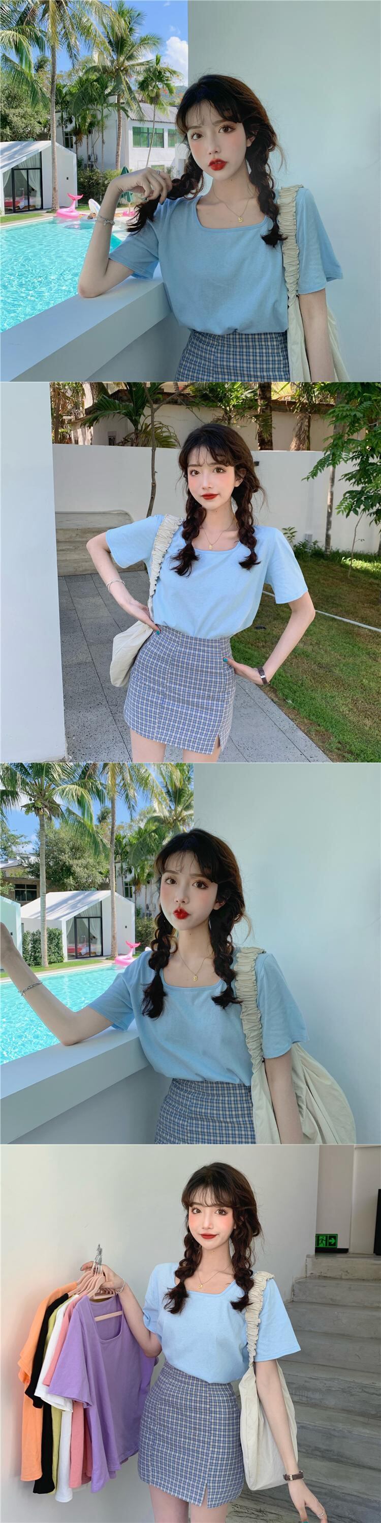 スタイルカラーショートTシャツ サマーレッドトップス 夏物 ピュア パープル スクウェア 試着室55023889847