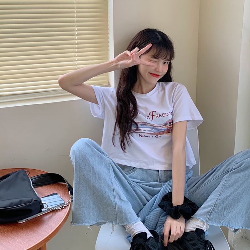ショートトップス サマーシャツ ルーズホワイトTシャツ 夏物 試着室1146829788
