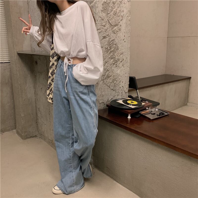 スプリングオータムルーズTシャツ ショートクロップトップ トップス ロング 春物 秋物 試着室2998619042
