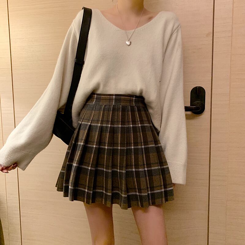 ショートスカート オータムウィンタースタンダード格子柄Aラインプリーツ レトロ 秋物 冬物 試着室38990295094
