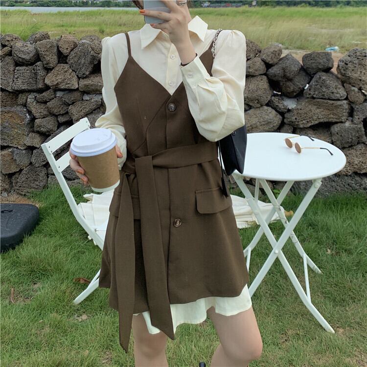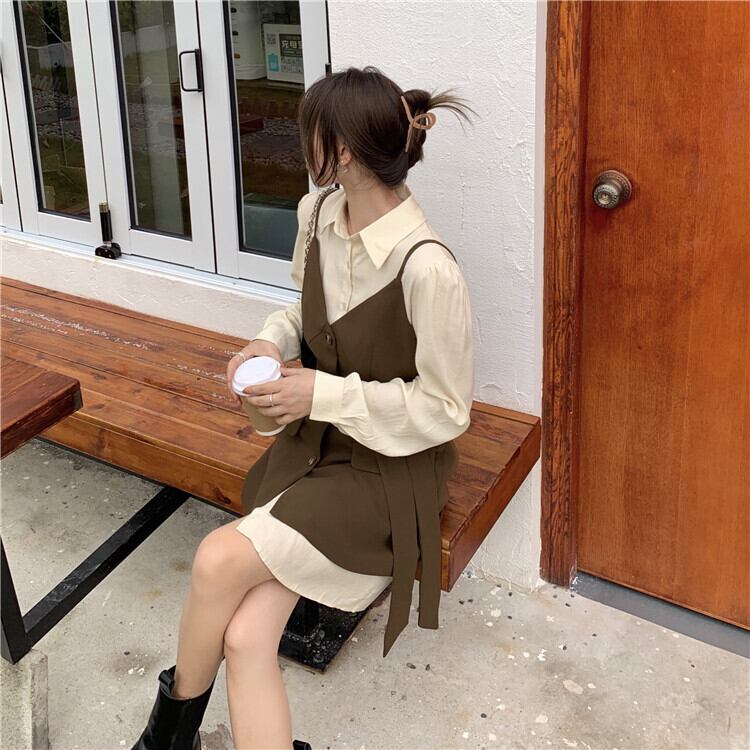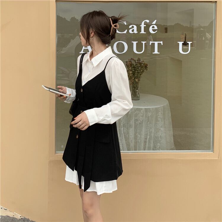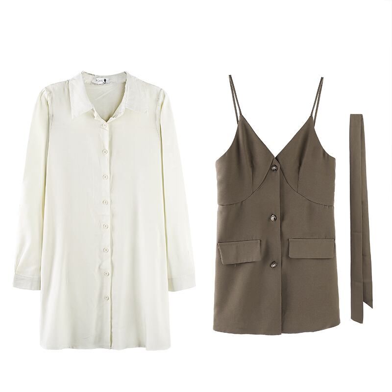 色:カーキ色のスカート,黒スカートワンピース,ワンピースアプリコットシャツ,白いシャツのワンピース