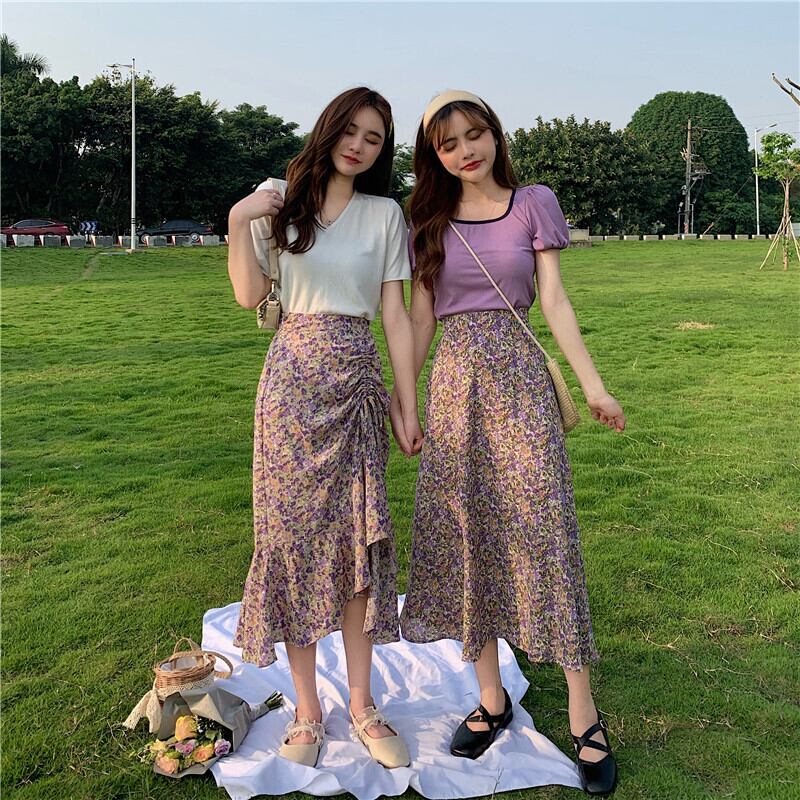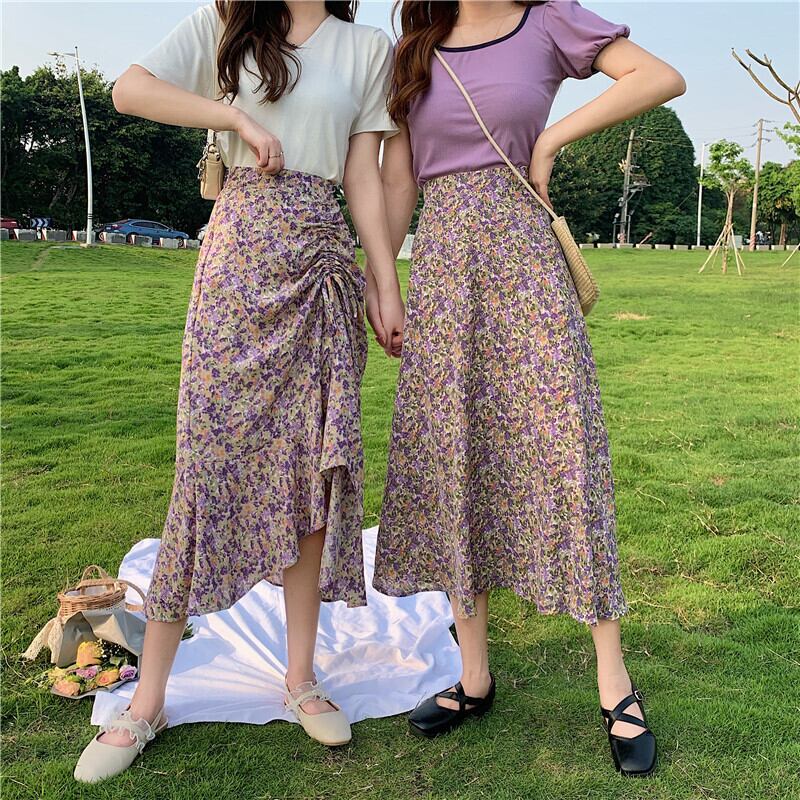 ウェストフローラルスカート サマースプリングオータムAライン 春物 夏物 秋物 花柄 試着室66722412366
