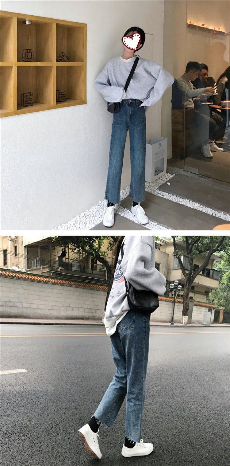 ジーンズ ルーズスタイルハイウェストパンツ スプリングオータムダーク薄手 春物 秋物 試着室64365097766