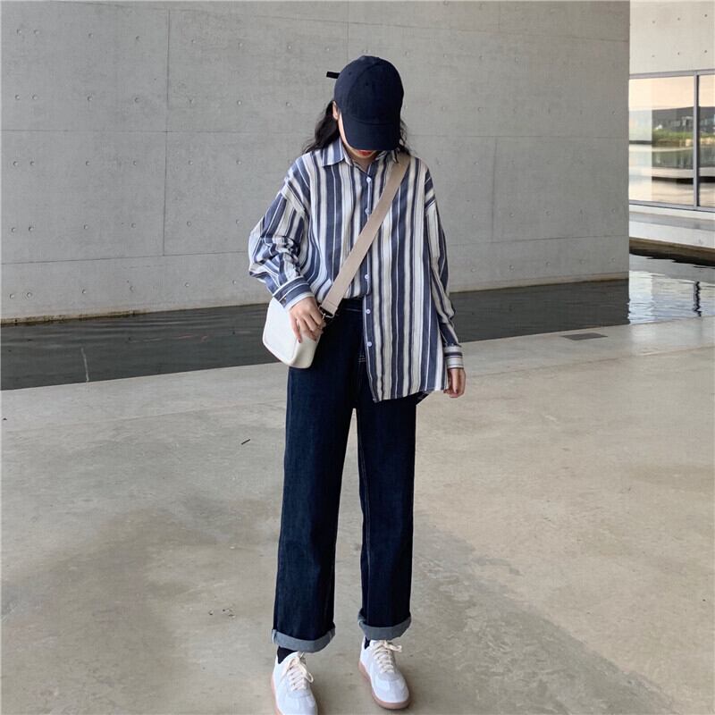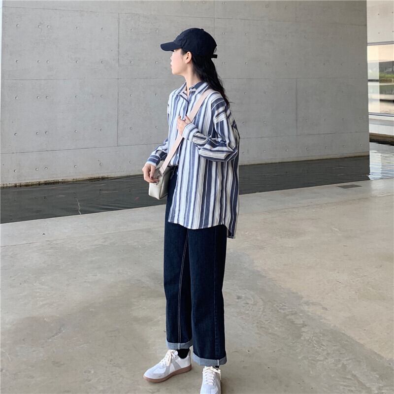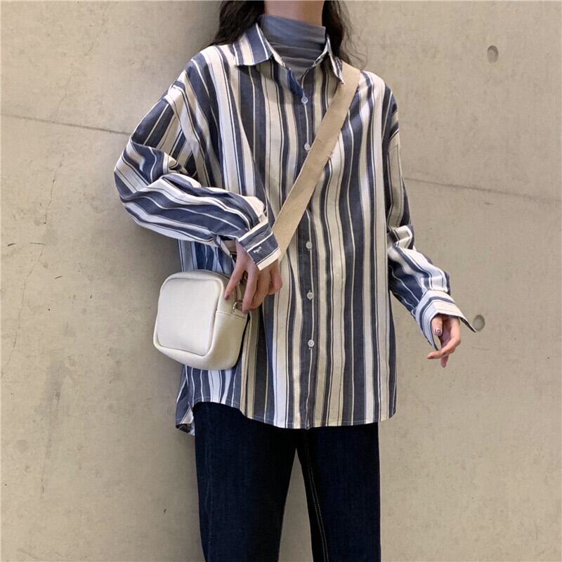 シャツ スプリングルーズストライプレディースジャケット 春物 試着室89459675191