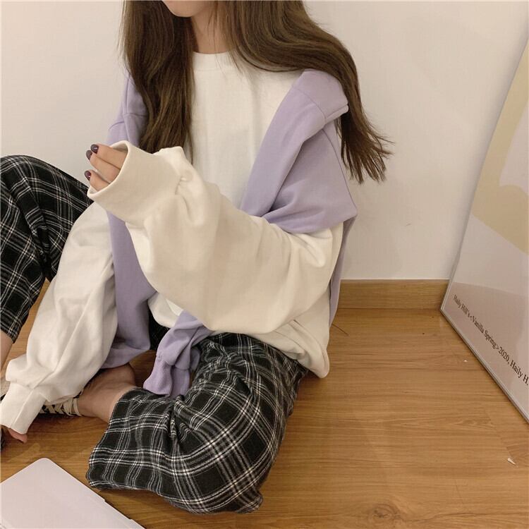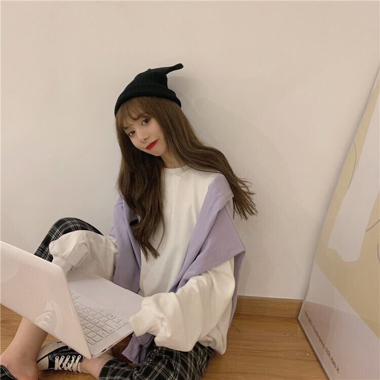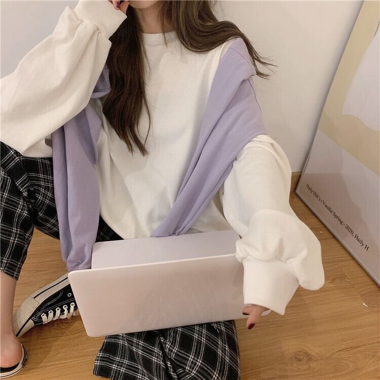スプリングルーズラウンドネックセーター シャツ 春物 Oネック 試着室63152141957