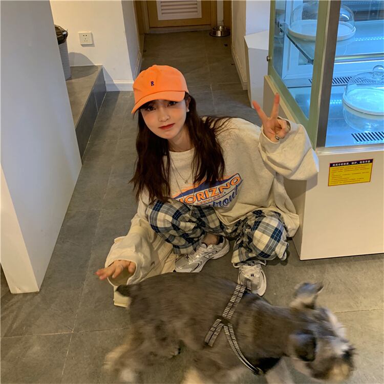 色:青いセーターワンピース,ホワイトグレーセーターシングル,格子縞のズボン