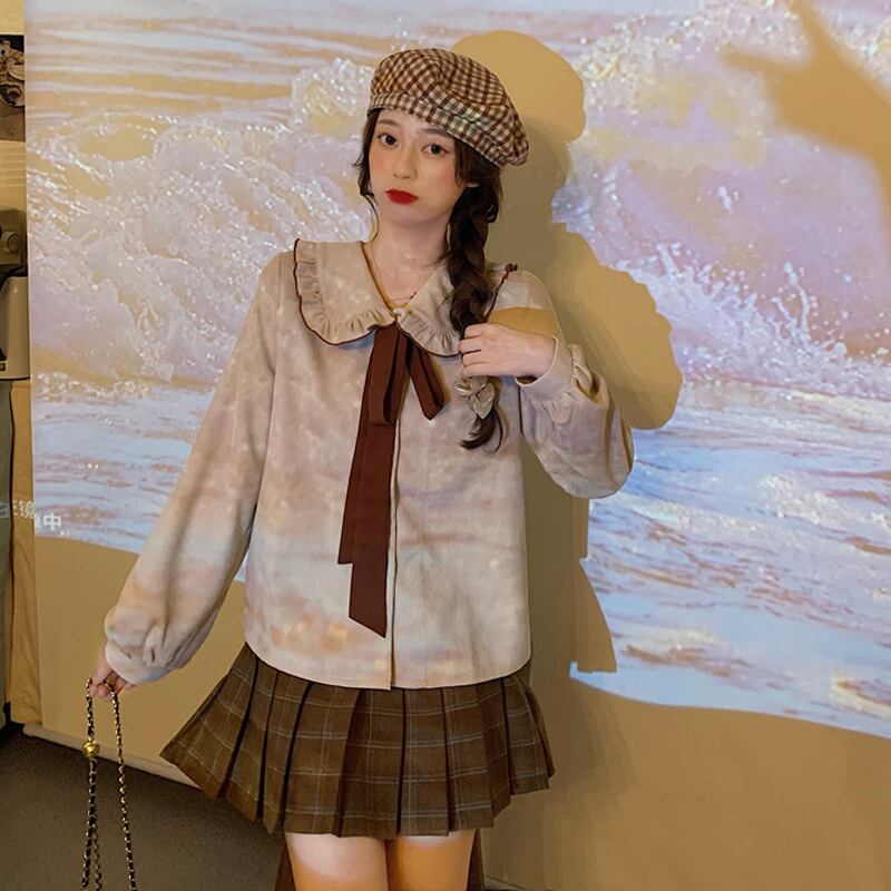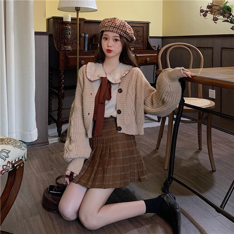 色:ワンピースアプリコットシャツ,コーヒーカラースカートワンピース,カーキセーターワンピース