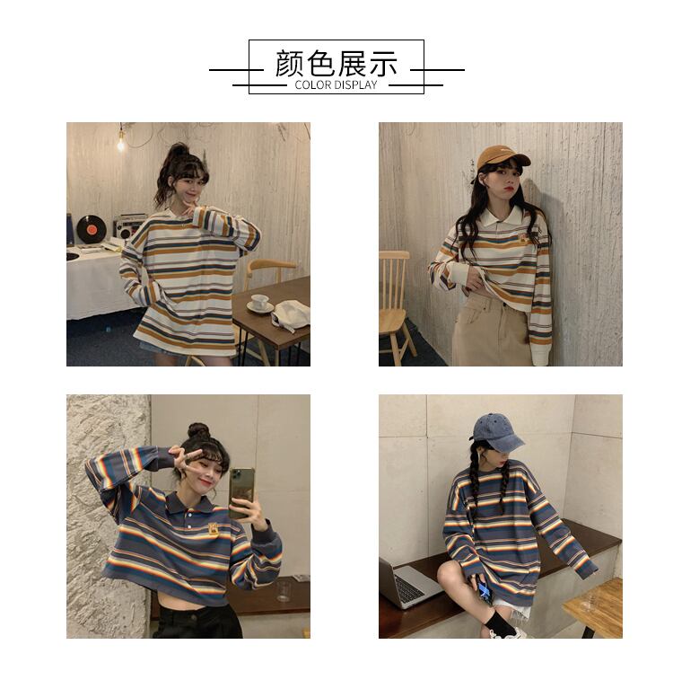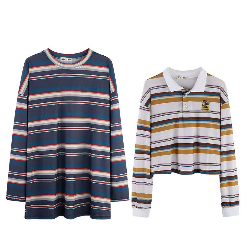 オータムスタイルルーズストライプTシャツ シャツ レディースショートトップス ロング 秋物 ウィンター 冬物 試着室8210550141