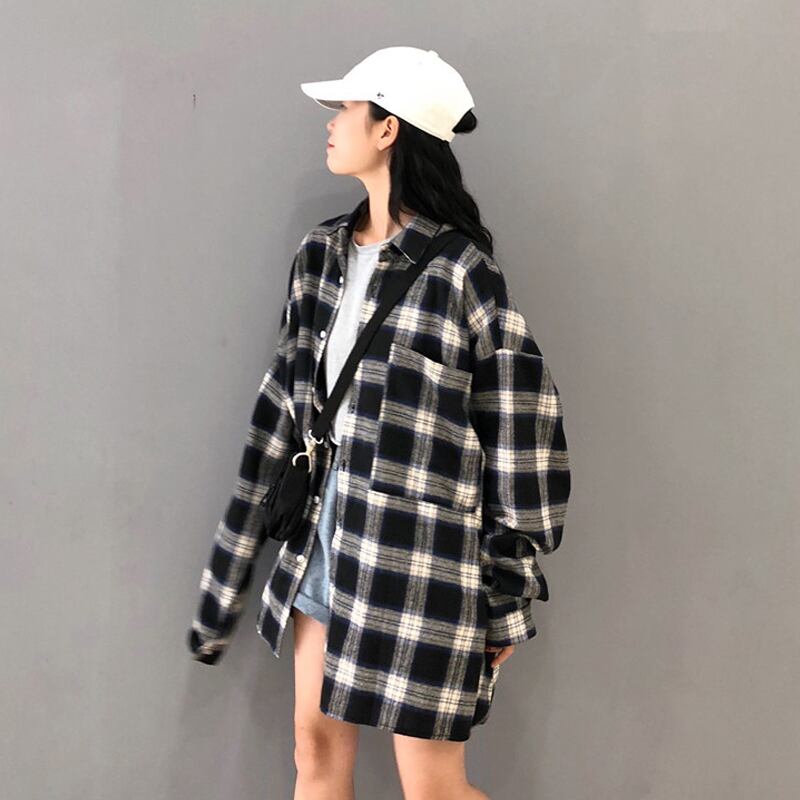 格子柄シャツ スプリングオータムルーズジャケット ロング 春物 秋物 試着室79083228055