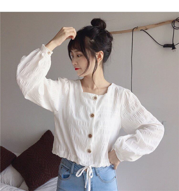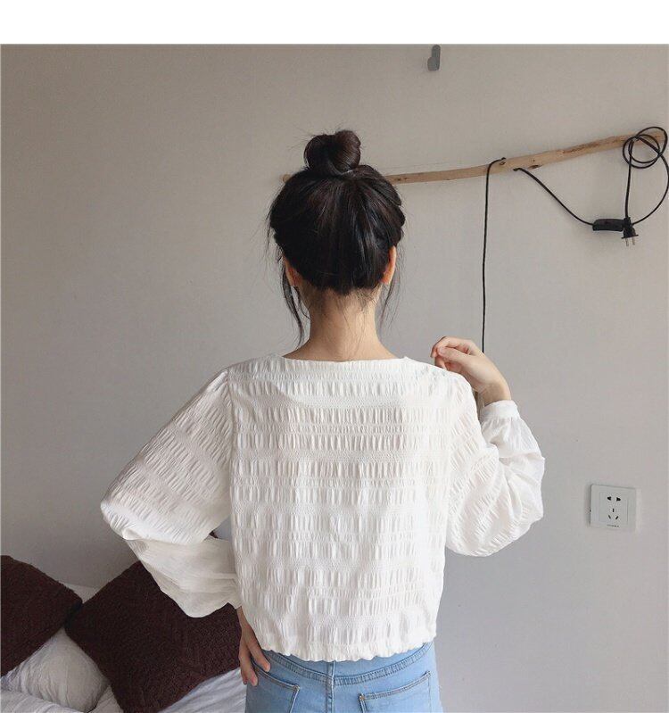 ギャザーシャツ サマースタイルショートトップス 長袖スリーブ ロング 夏物 試着室64239486053