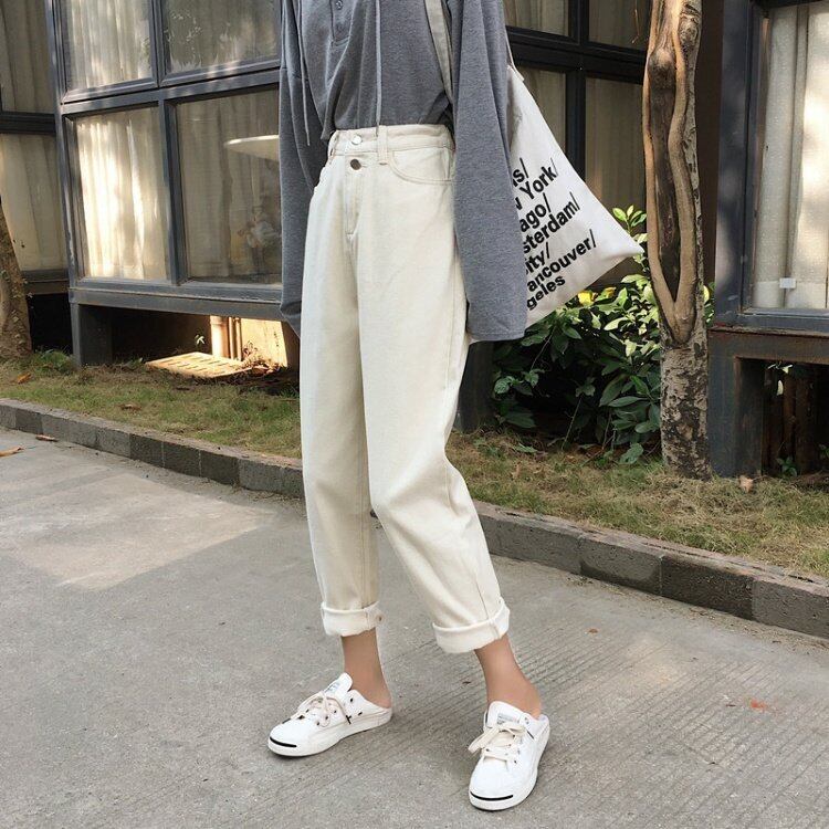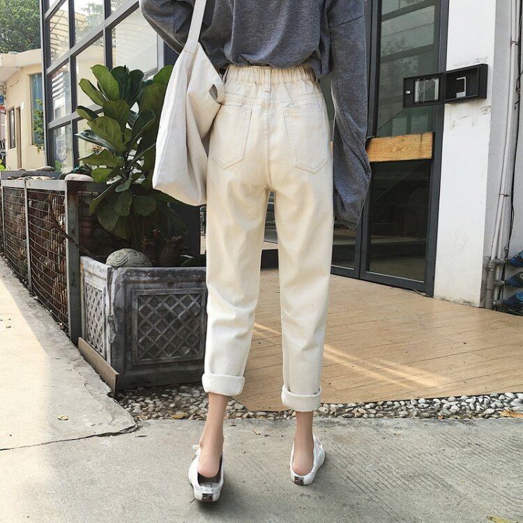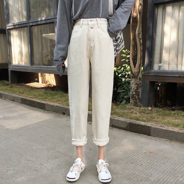 オータムウィンターパンツ ハイウェストウェストジーンズ クロップド薄手ルーズ 秋物 冬物 試着室27365064943