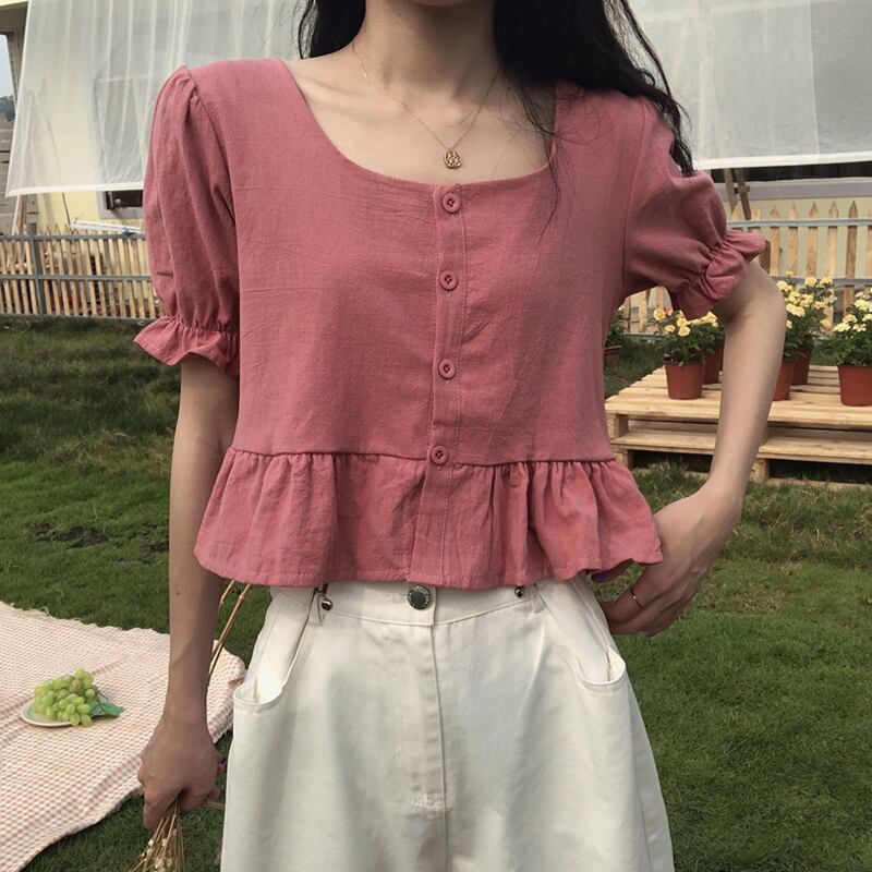 サマーシャツ カラー半袖スリーブトップス ショート ハーフスリーブ 夏物 スクウェア 試着室95052179495
