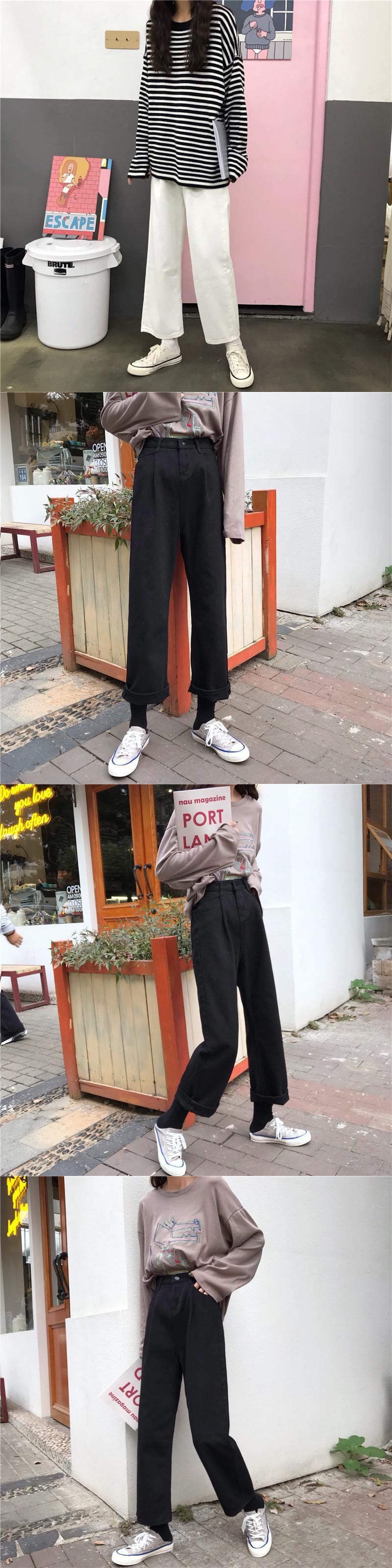 ホワイトハイウェストウェストジーンズ レディースオータムウィンタールーズパンツ ワイドレッグ 秋物 冬物 ワイドパンツ 試着室70624733953