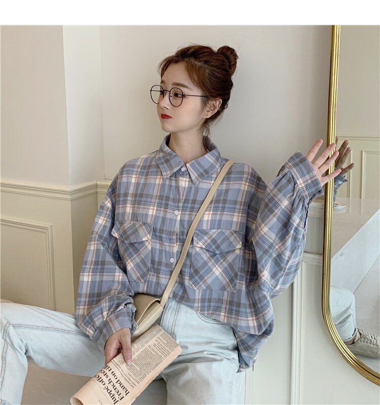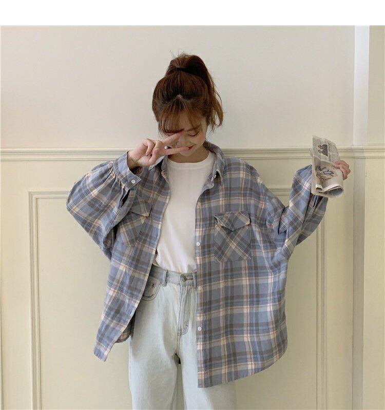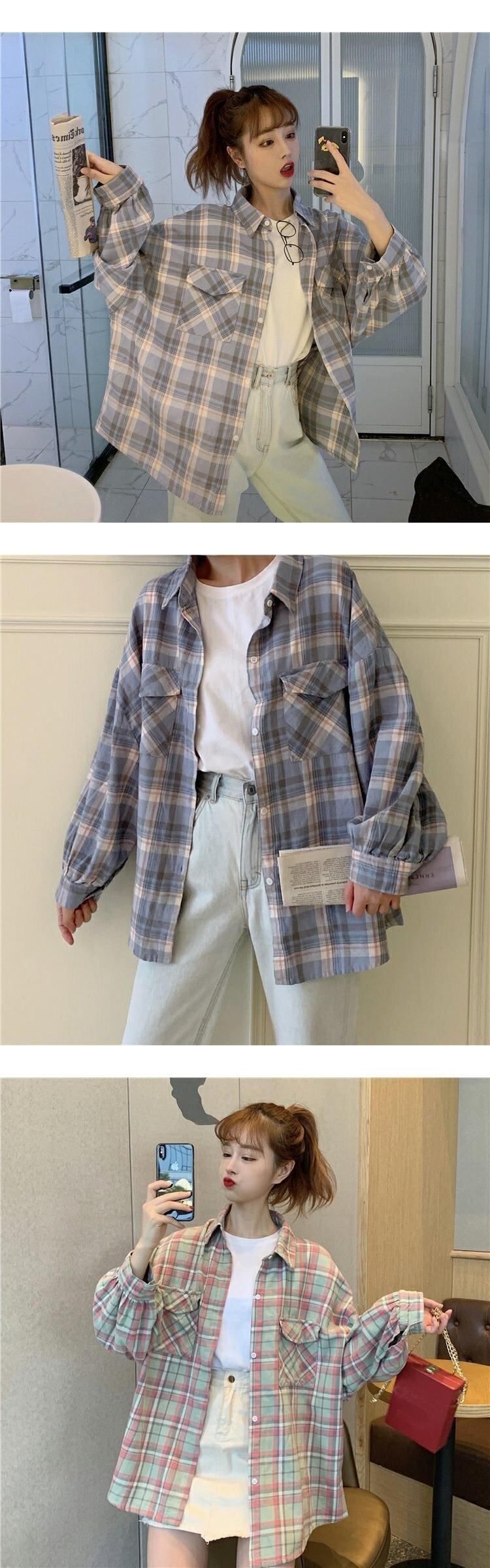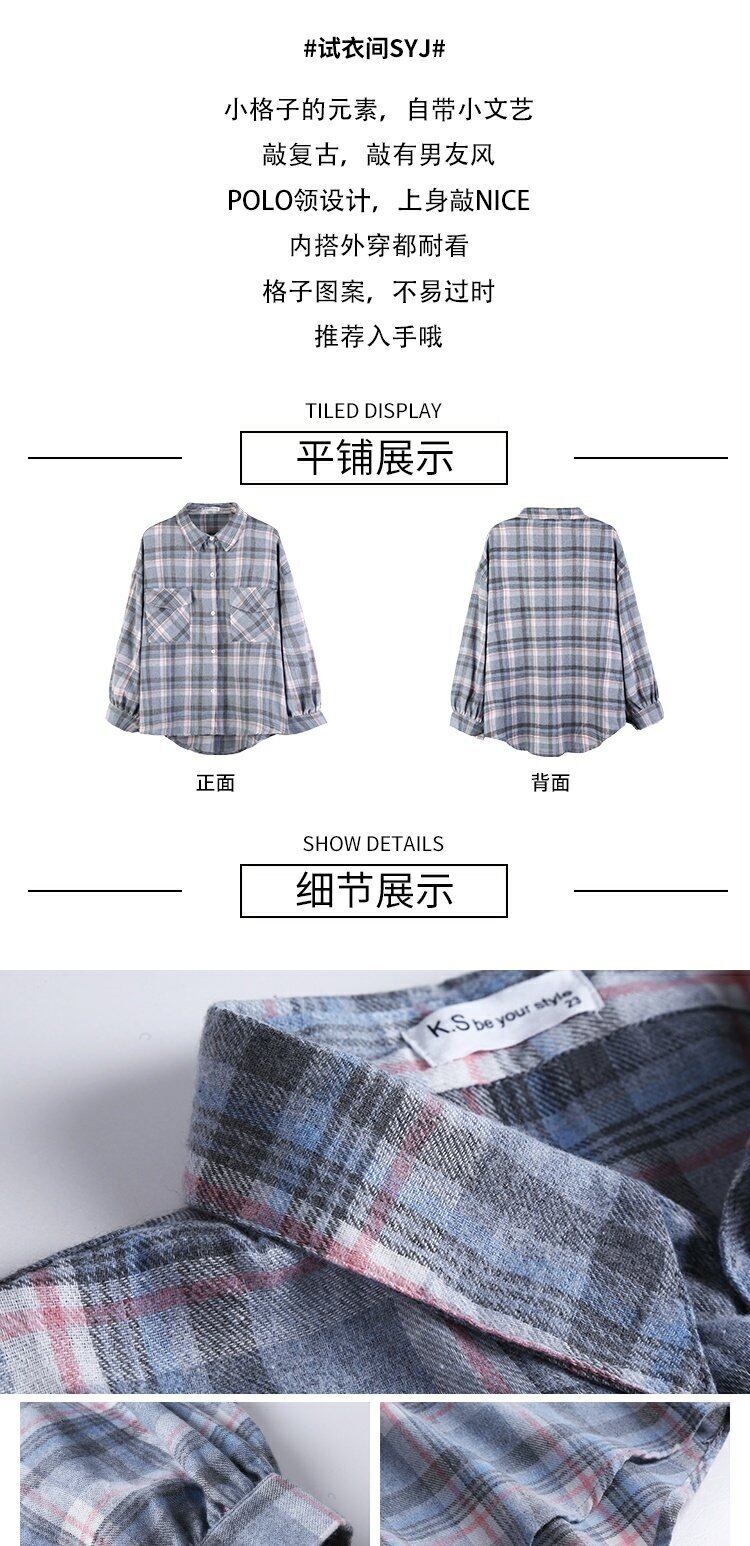 シャツ スプリングオータムルーズ格子柄コート ジャケット ロング 春物 秋物 試着室18668531257