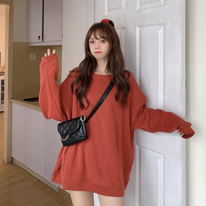 レッドプルオーバー セーター スプリングルーズ薄手トップス ロング 春物 試着室15273135921