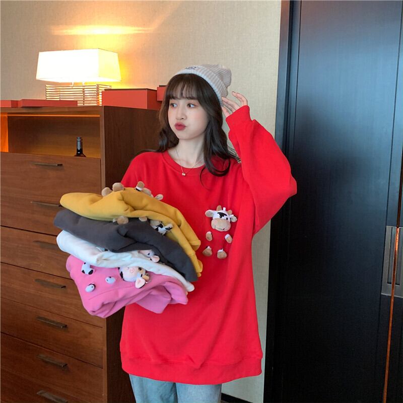 スプリングスタイル薄手ルーズブラウス ラウンドネックプルオーバー 長袖スリーブレッドセーター レディース ロング 春物 Oネック 試着室17867478001