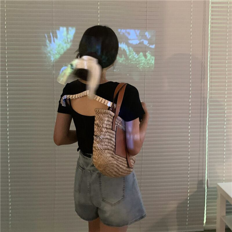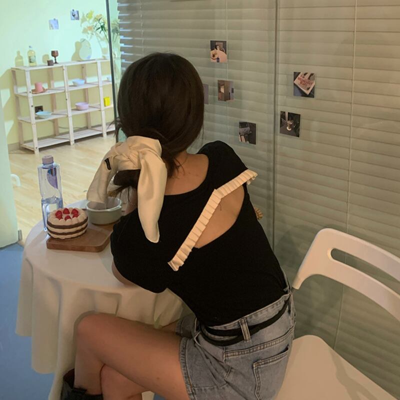 サマースタイルショートホルタートップス スリムブラックTシャツ レディース 夏物 試着室96453406476
