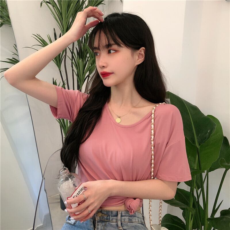 ホワイトTシャツ シャツ サマースタイルスリムVネックソリッド カラートップス 夏物 ソリッドカラー 試着室85129239691