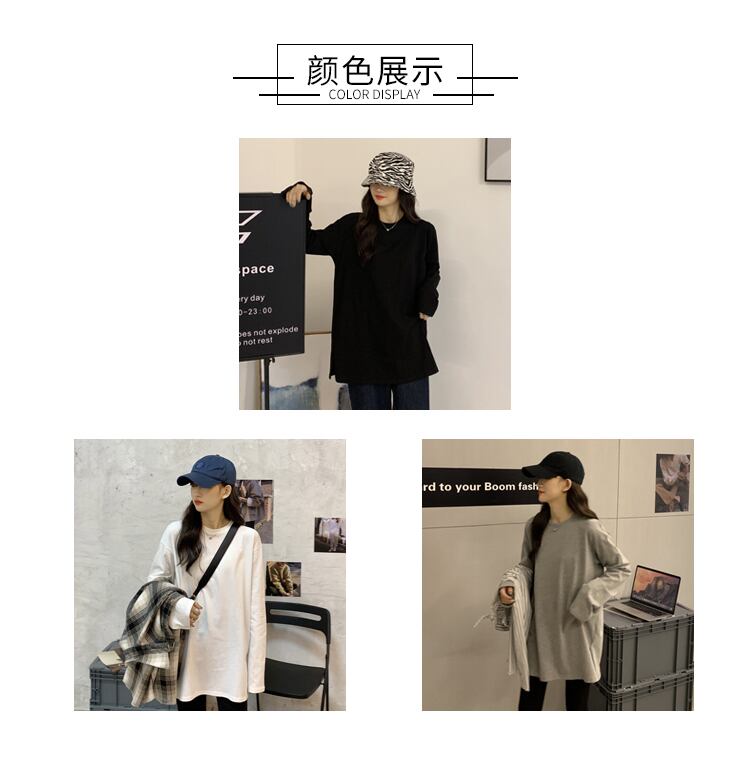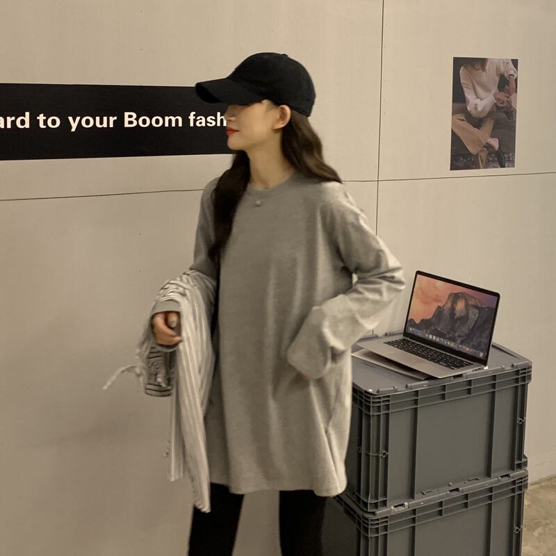 スタイルルーズホワイトTシャツ スプリングオータムトップス ロング コットン 春物 秋物 試着室31487201548