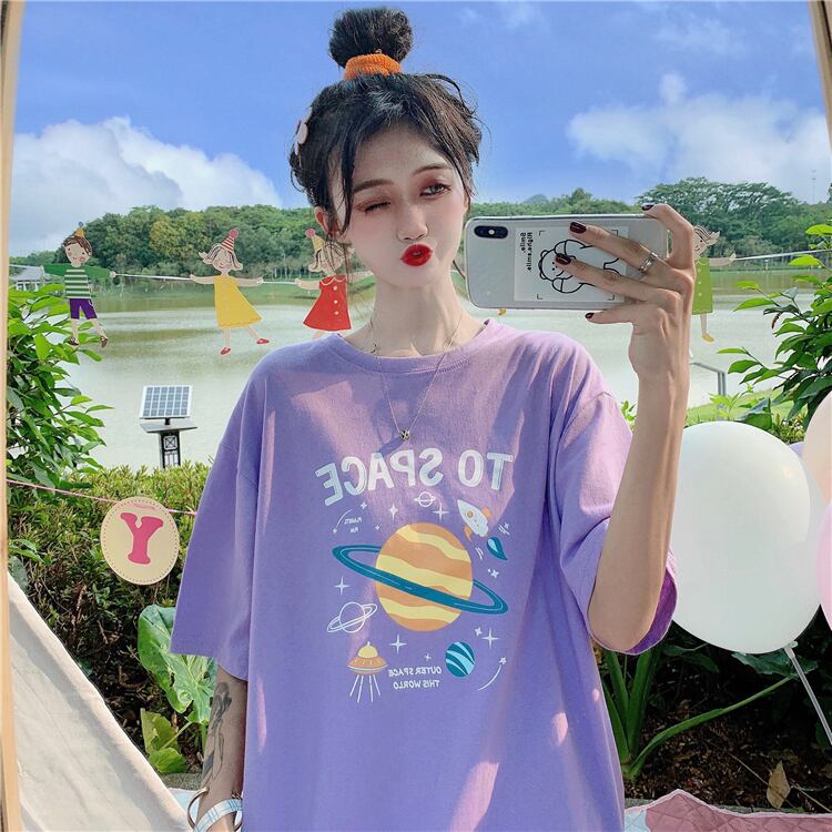 レッドTシャツ サマールーズトップス 夏物 パープル 試着室95636944843
