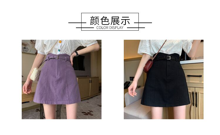 スカート サマーAラインショートハイウェストウェスト 夏物 パープル 試着室40286801566