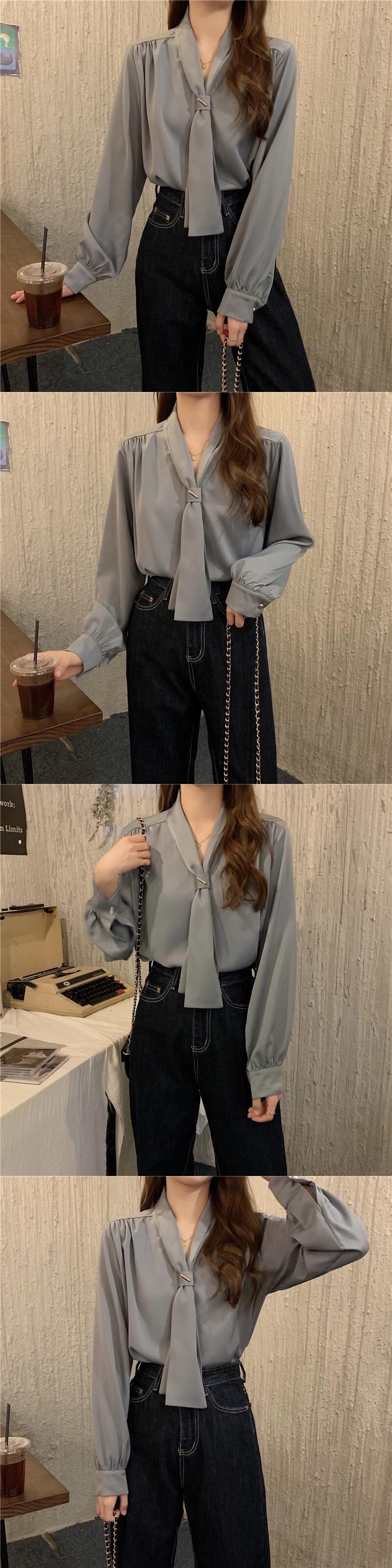 ホワイトシャツ スタンダードスタイルスプリングオータムトップス ロング レトロ 春物 秋物 Vネック 試着室18456927268