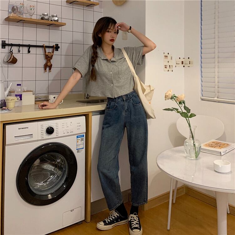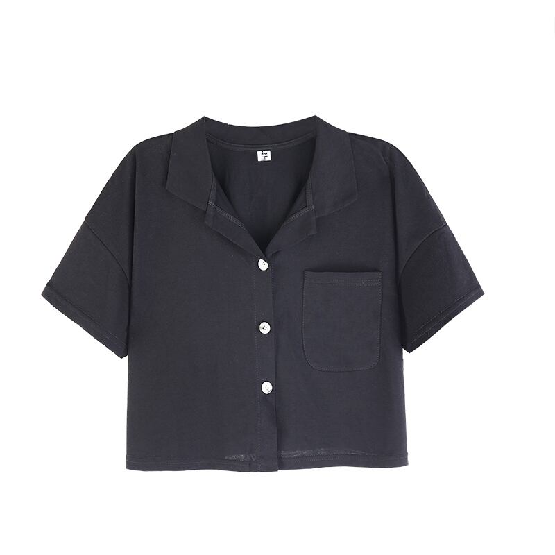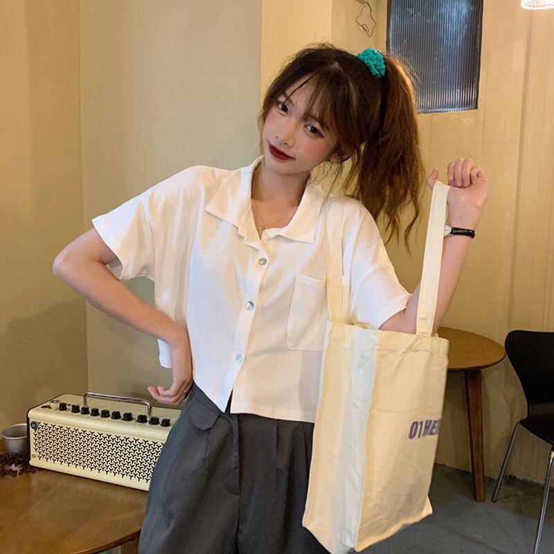 ホワイトショートシャツ オータムルーズトップス 秋物 試着室51665643756