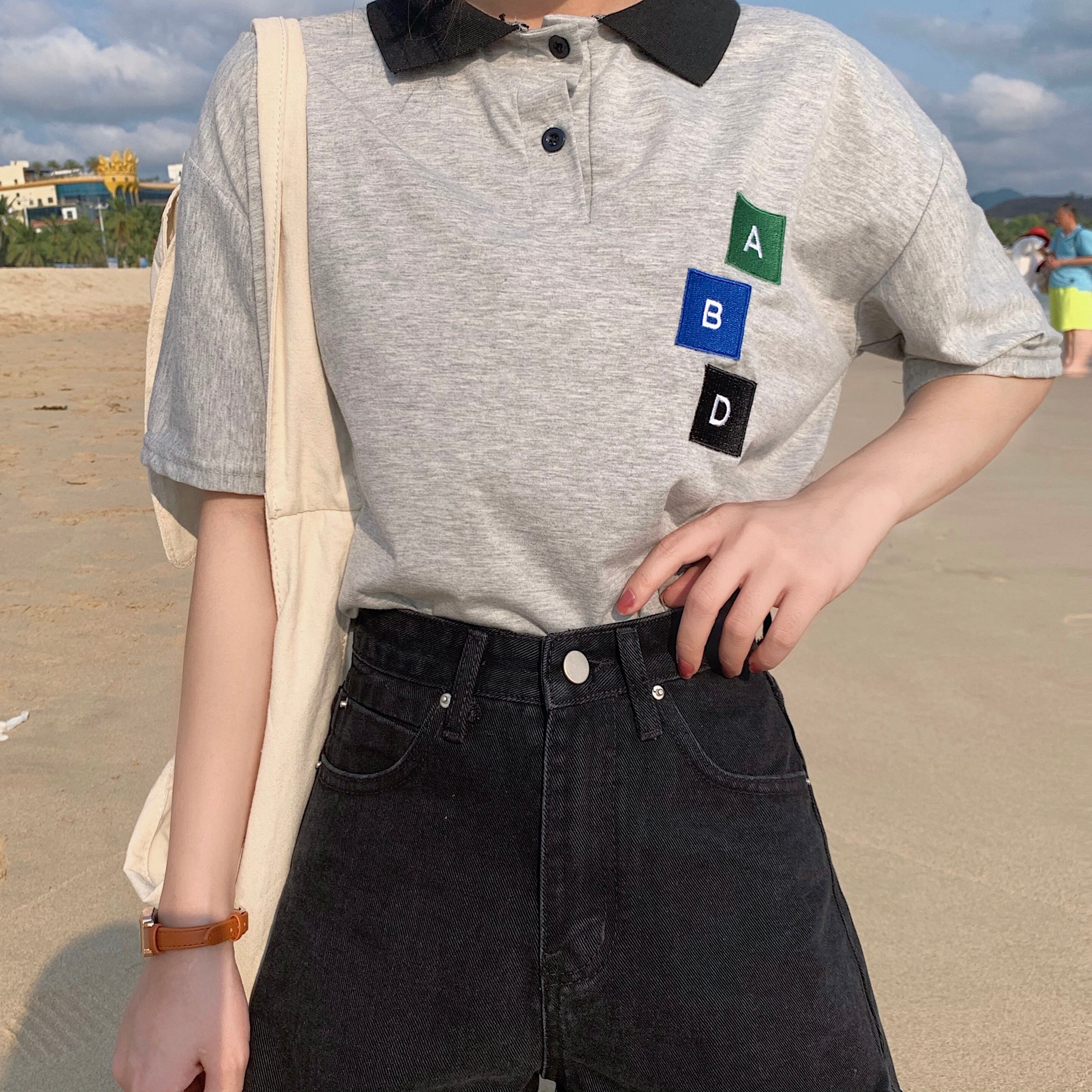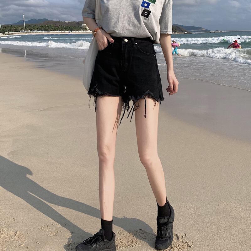 パンツ スプリングオータムルーズウェストブラックジーンズ レディース薄手Aラインショーツ 春物 秋物 ブルマー 試着室76928649627