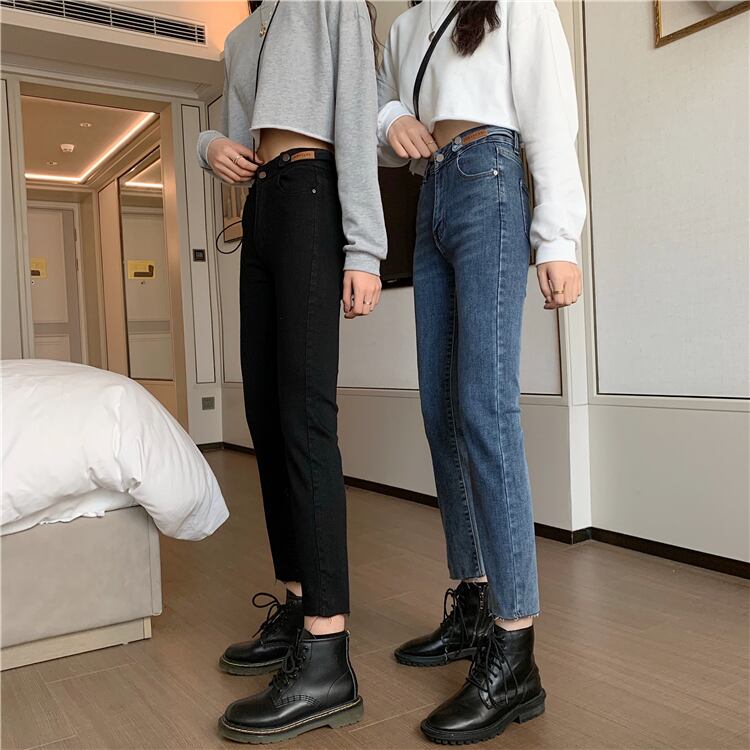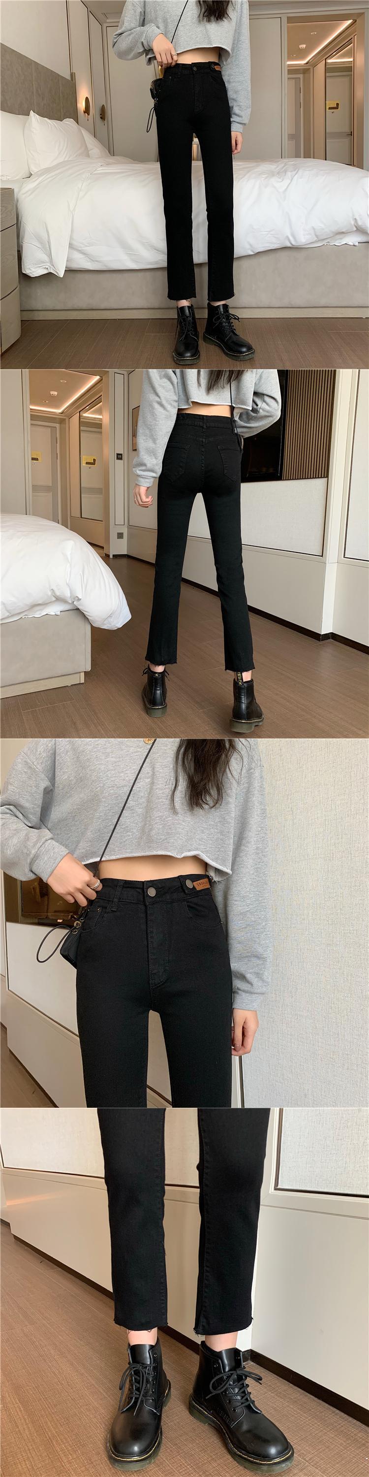 パンツ スプリングオータムルーズブラックハイウェストウェスト薄手ジーンズ レディース 春物 秋物 試着室18676536491